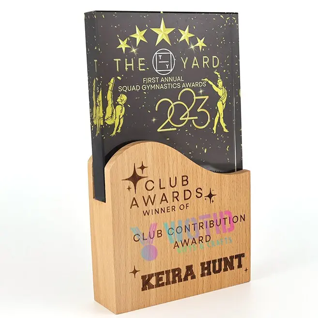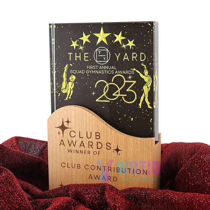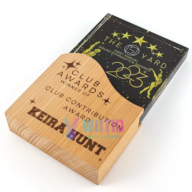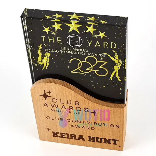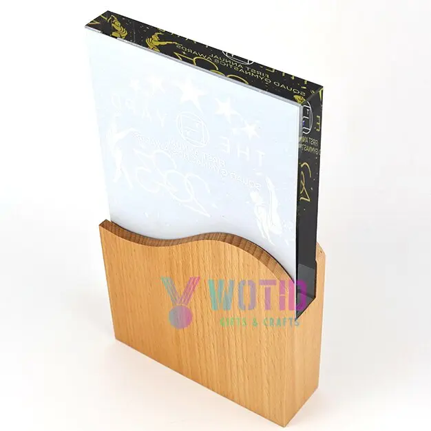 product customized high quality durable die cast engraved trophies design sports honor crystal award wooden base luxury souvenir plaque-0