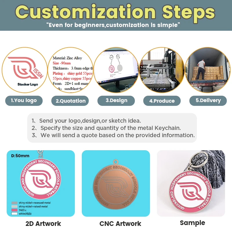Welcome to our store, we are a supplier of customized metal keychains. Our products are high-quality, durable and stylish. You can customize them with different shapes, colors, designs and engravings. They are great for gifts, souvenirs, promotions or accessories. Contact us now and get a free quote. We offer fast delivery, low prices and great service.