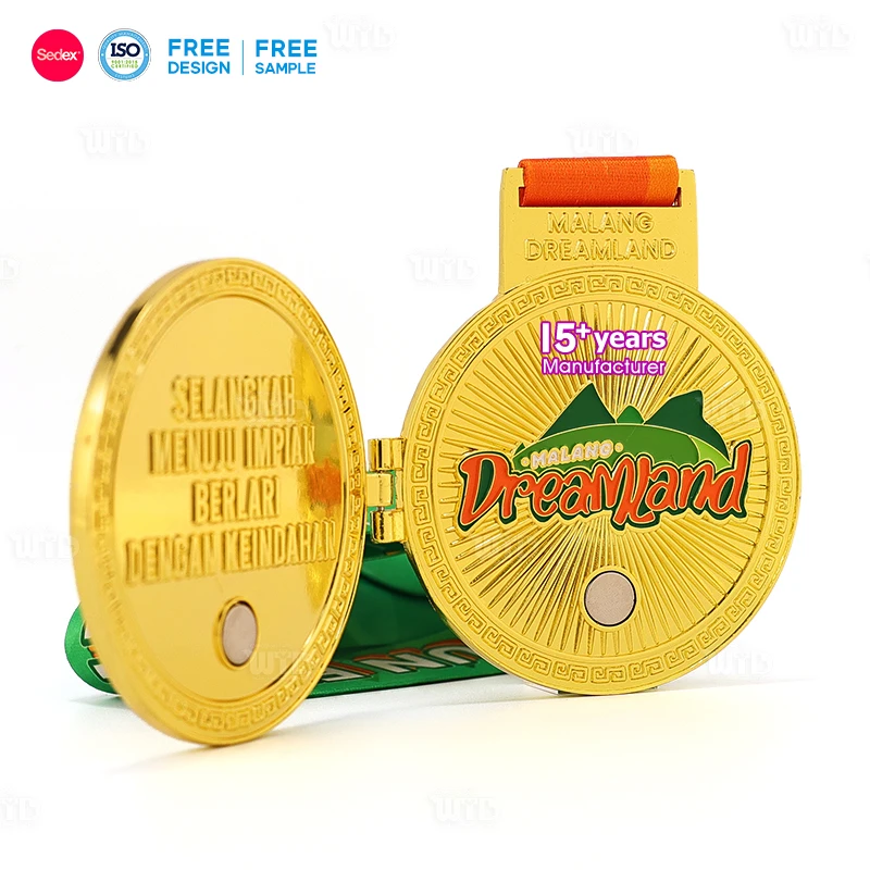 Factory Custom Gold Flip-Cover 5K Marathon Metal Medals High Quality Durable Engraved Personalized Sports Running Finisher Award