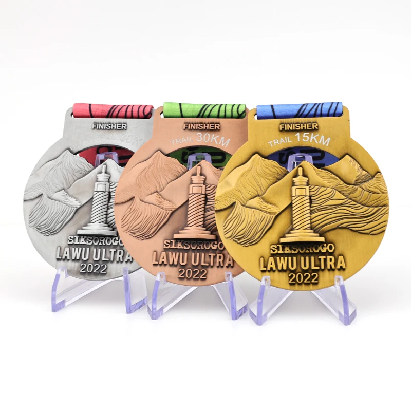 WTD Custom Design Marathon Running Medals 15/60/120k Die Casting Gold Silver Bronze Round Shape Trail Run Medal With Ribbons